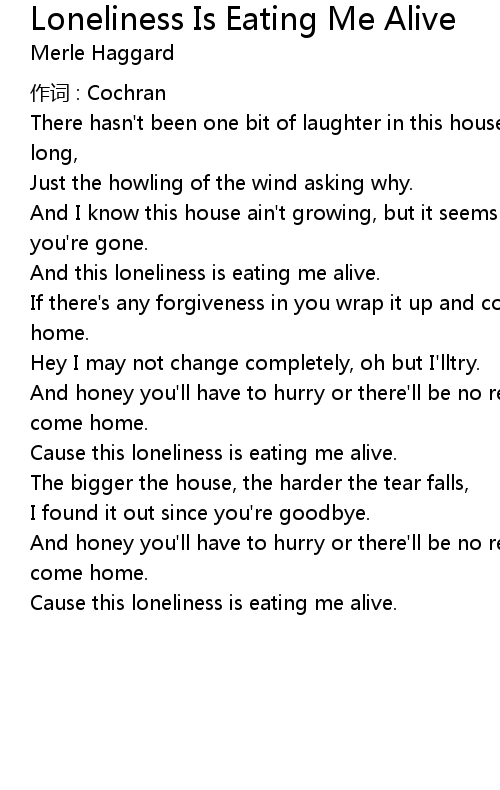 | And this loneliness is eating me alive. | |