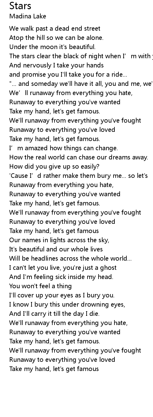 | "... and someday we'll have it all, you and me, we're gonna be stars" | |