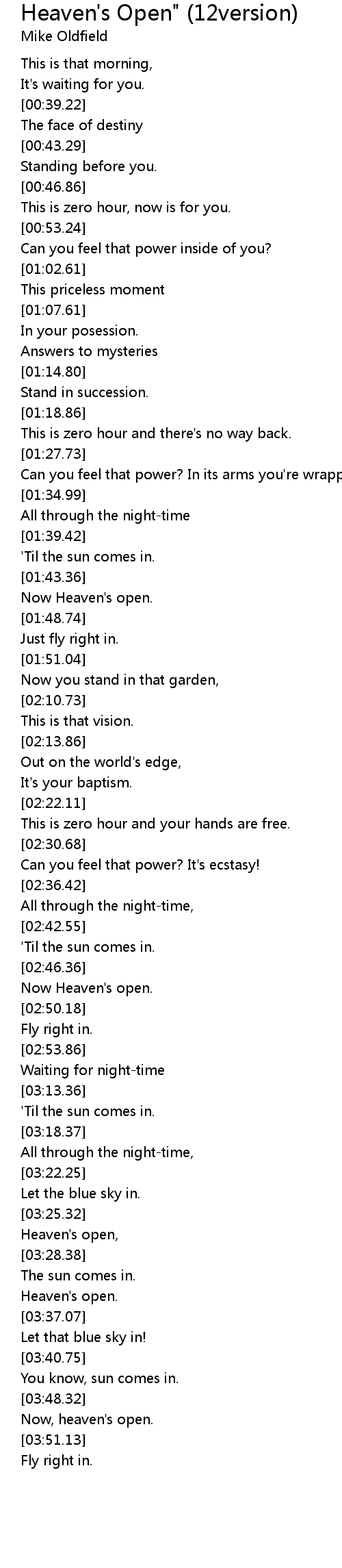 Heaven's open, |
