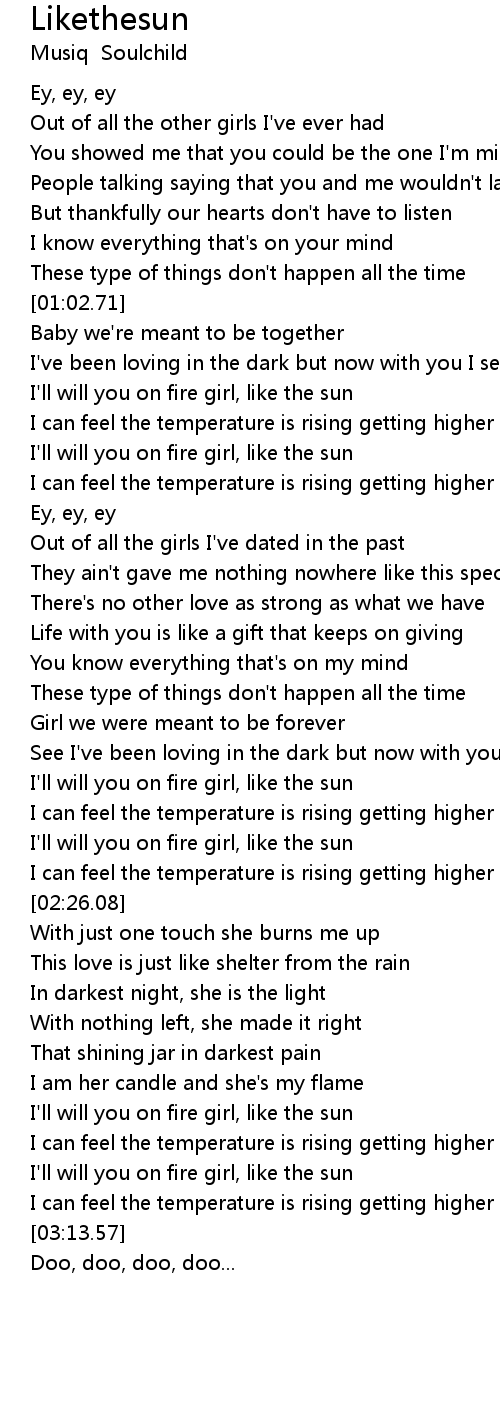 I'll will you on fire girl, like the sun |