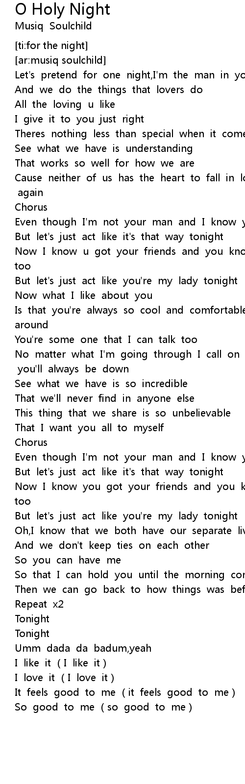 | [01:03.510] | But let' s just act like it' s that way tonight |