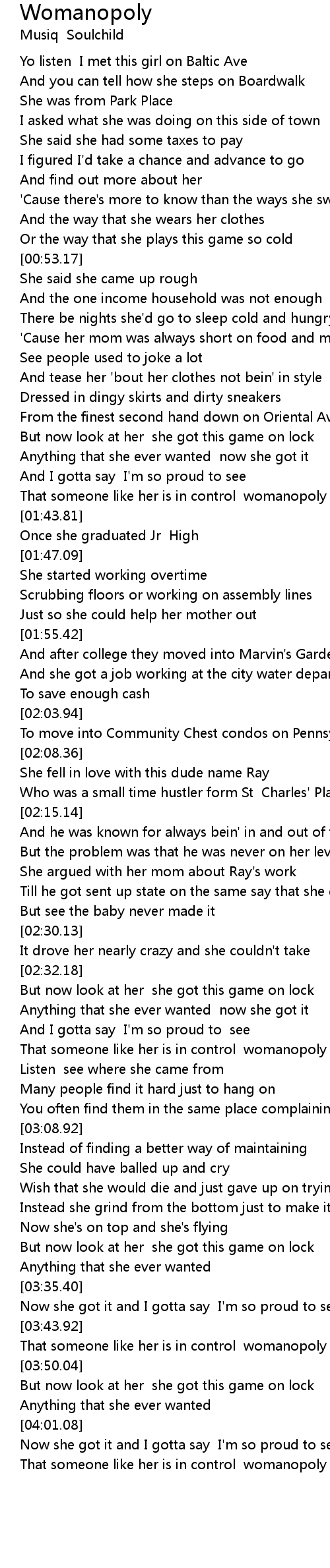That someone like her is in control womanopoly |