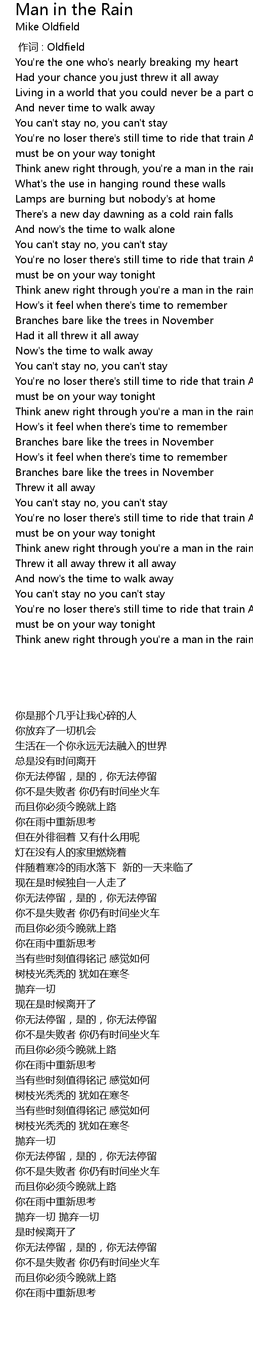 | [00:00.00] | 作词 : Oldfield |