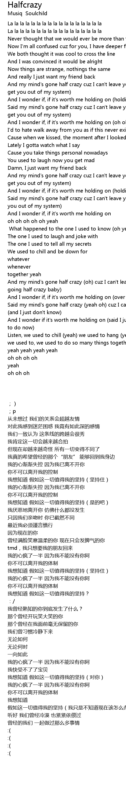 Said my mind's gone half crazy (yeah oh) cuz I can't leave you alone (and I just don't know) |