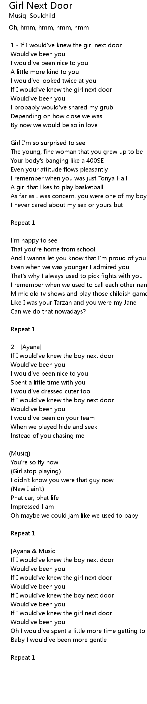 If I would've knew the girl next door |