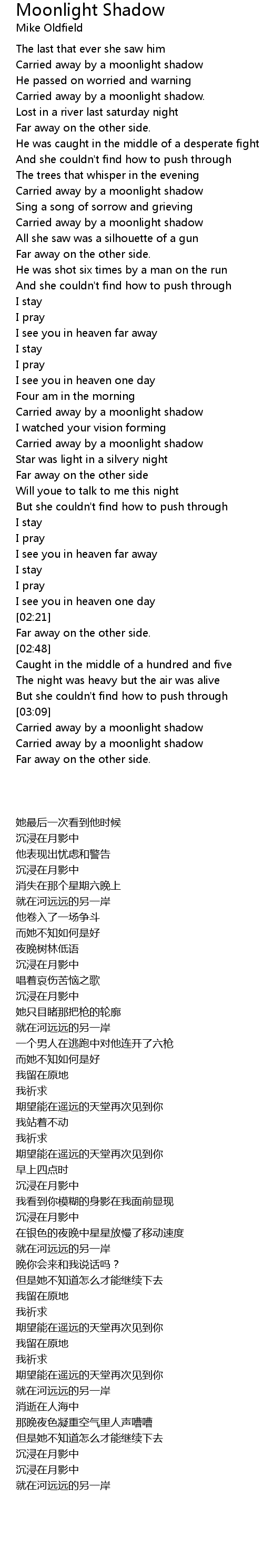 Carried away by a moonlight shadow |