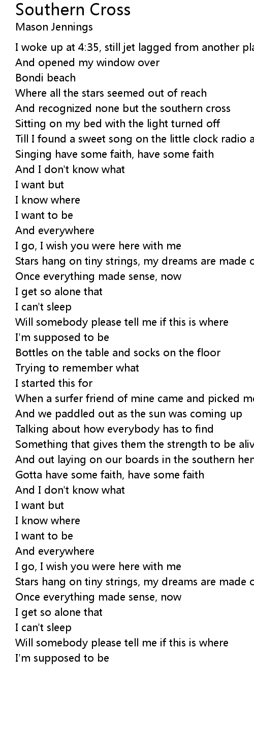 And recognized none but the southern cross |