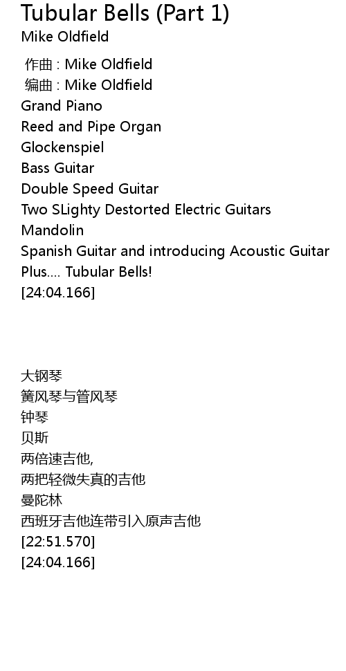 | [00:01.000] | 编曲 : Mike Oldfield |