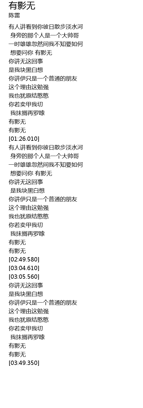 | [03:37.390] | 有影无 |