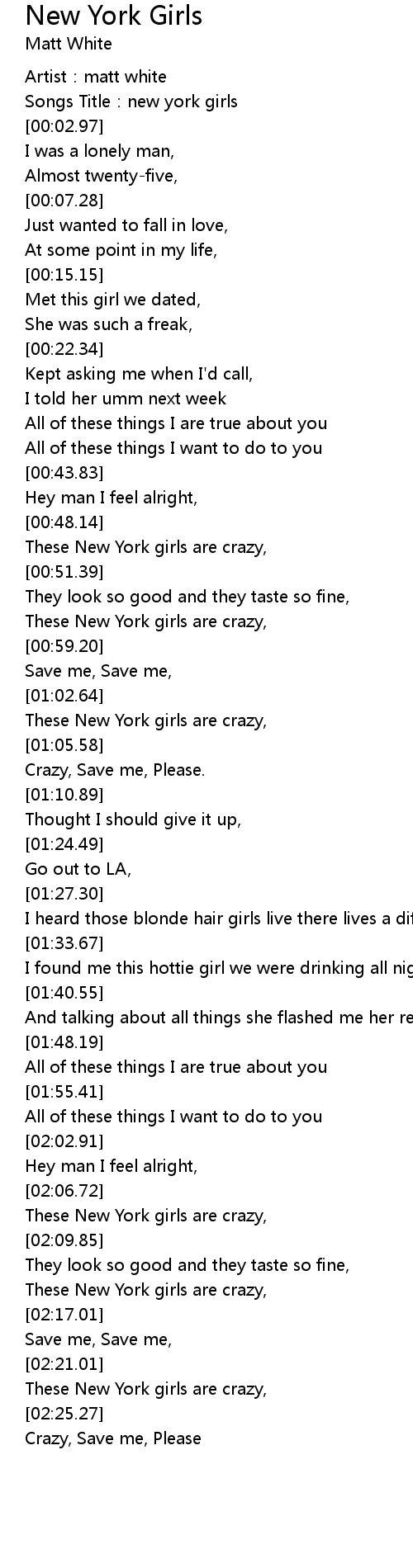 | [00:49.14] | These New York girls are crazy, |