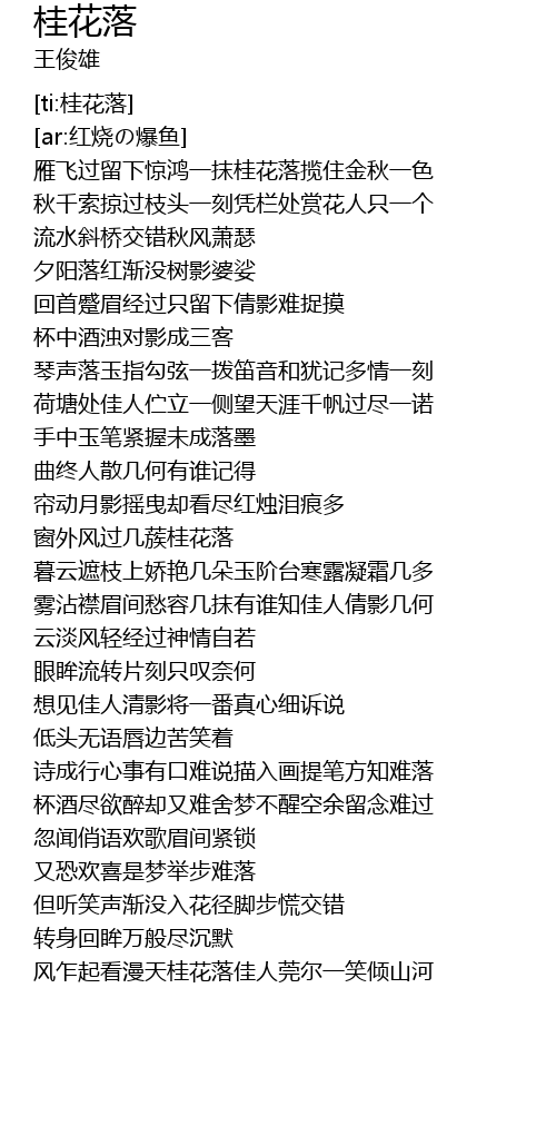 | [04:29.724] | 风乍起看漫天桂花落佳人莞尔一笑倾山河 |