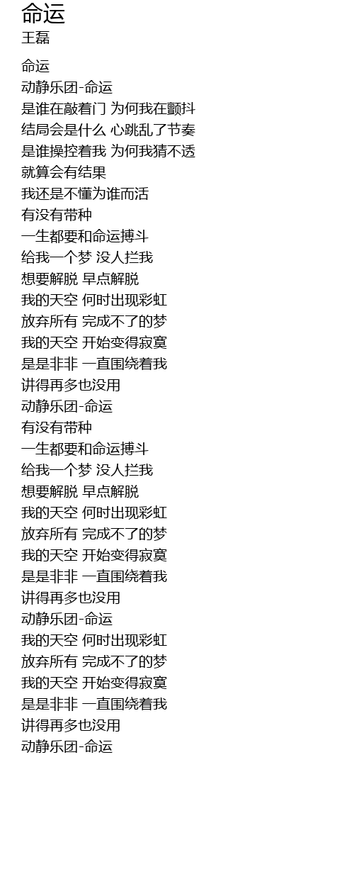 | [00:41.20] | 动静乐团-命运 |