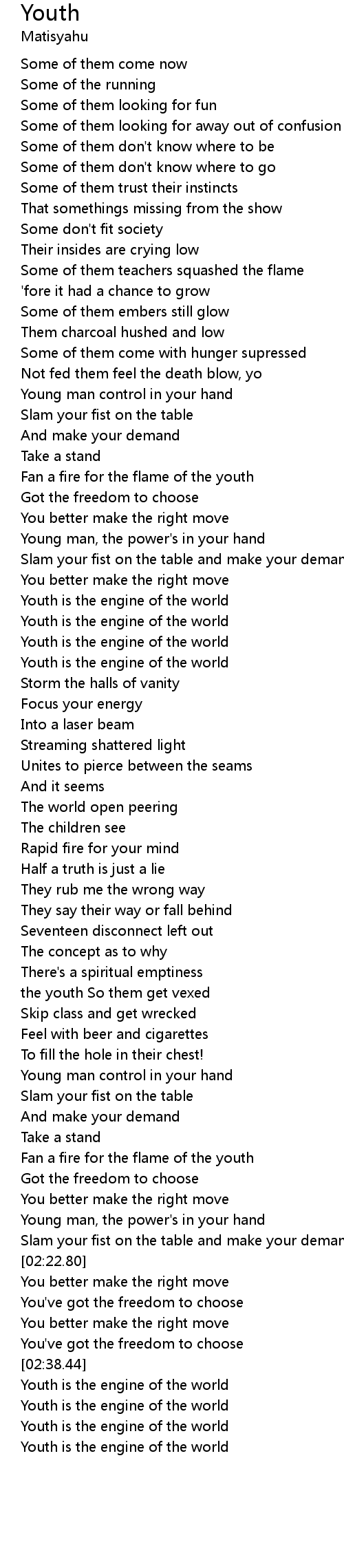 Youth is the engine of the world |
