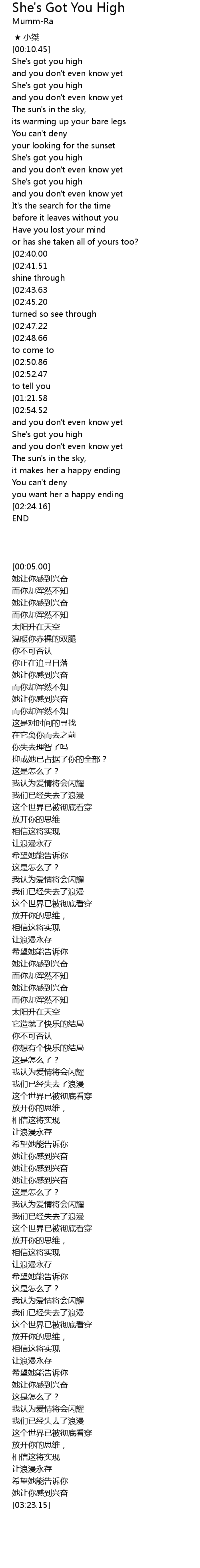 | [03:16.47][02:54.52][02:18.12][02:10.83][02:03.59][01:27.48] | She' s got you high |