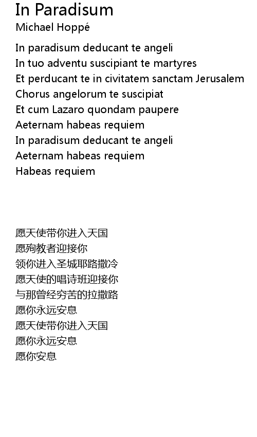 | [01:28.43] | Chorus angelorum te suscipiat |