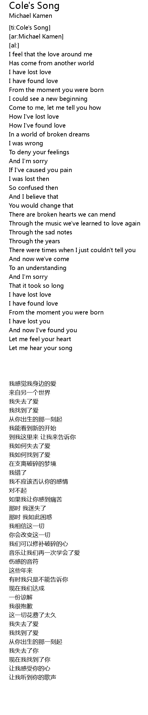 [ti:Cole's Song] |