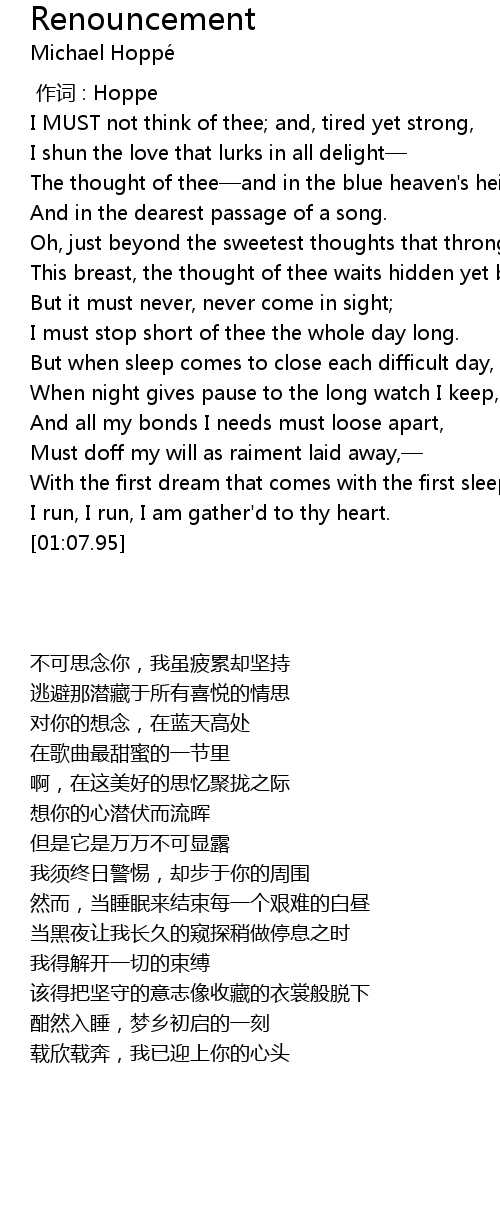 | [00:38.56] | I must stop short of thee the whole day long. |