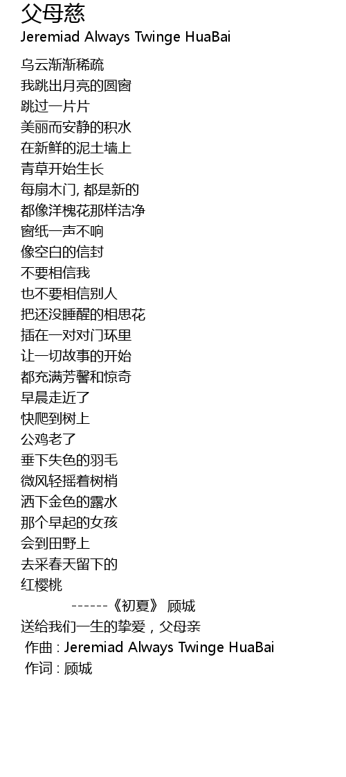 | [00:00.00] | 作词 : 顾城 |