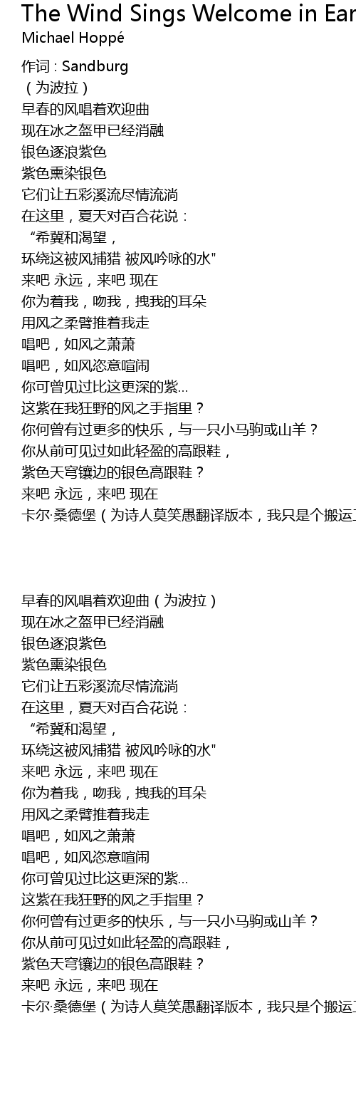 | [01:23.90] | 卡尔·桑德堡(为诗人莫笑愚翻译版本,我只是个搬运工~) |