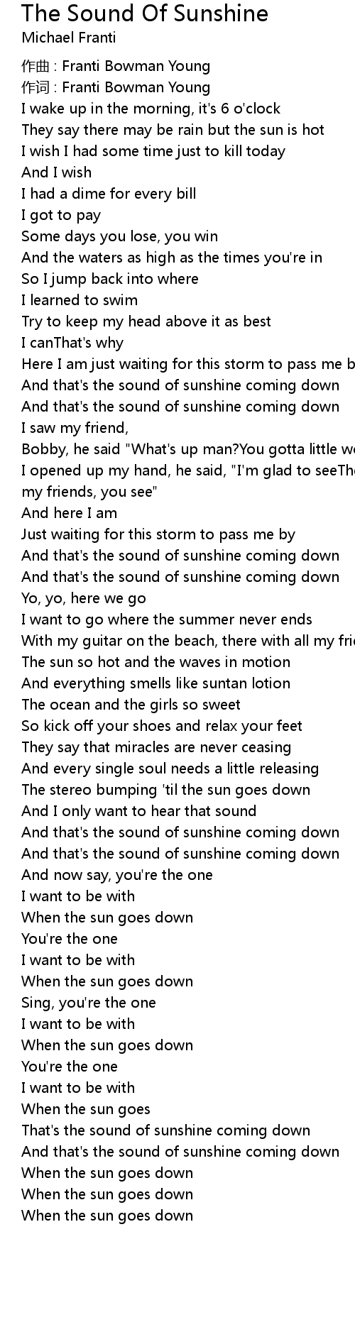 | That' s the sound of sunshine coming down | |