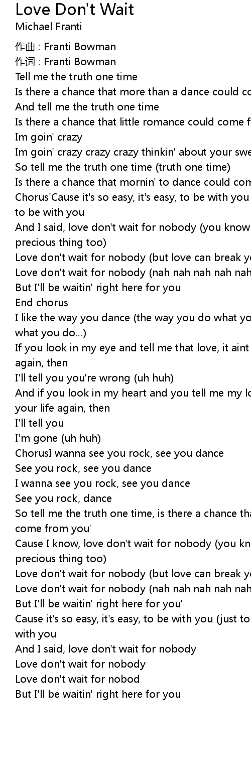| Love don't wait for nobody (nah nah nah nah nah nah nah nah) | |