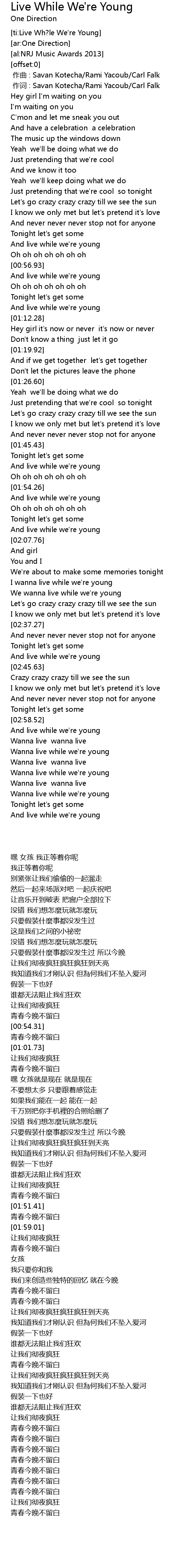 | [00:53.00] | And live while we' re young |