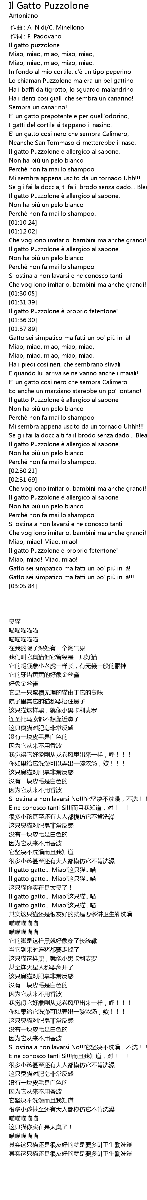 | [00:22.74] | Lo chiaman Puzzolone ma era un bel gattino |