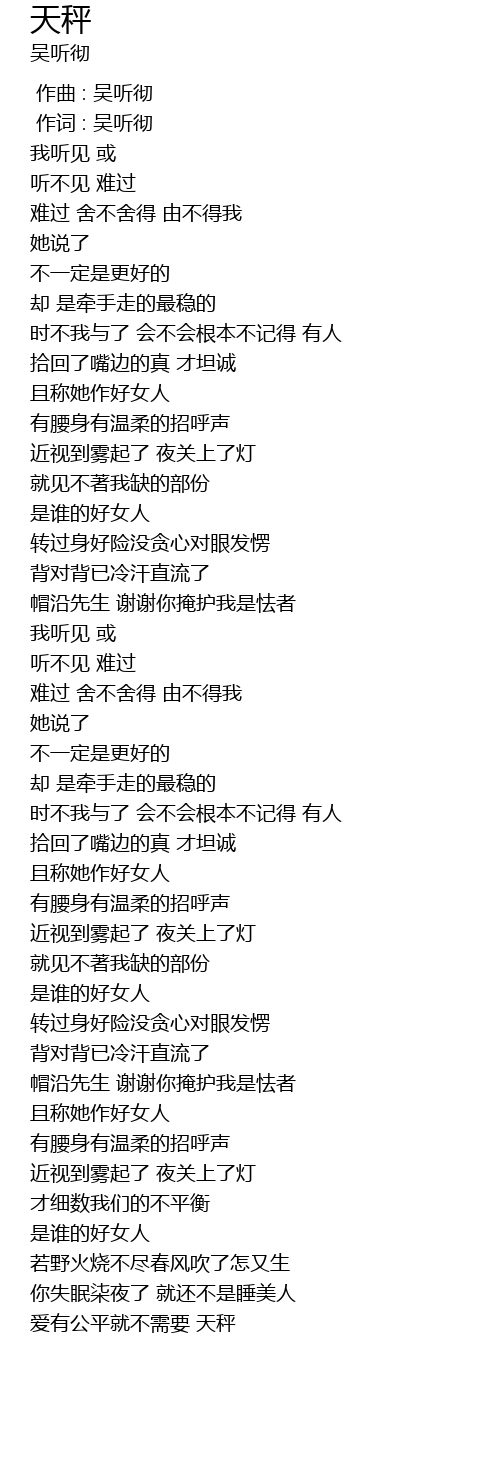 | [00:01.00] | 作词 : 吴听彻 |