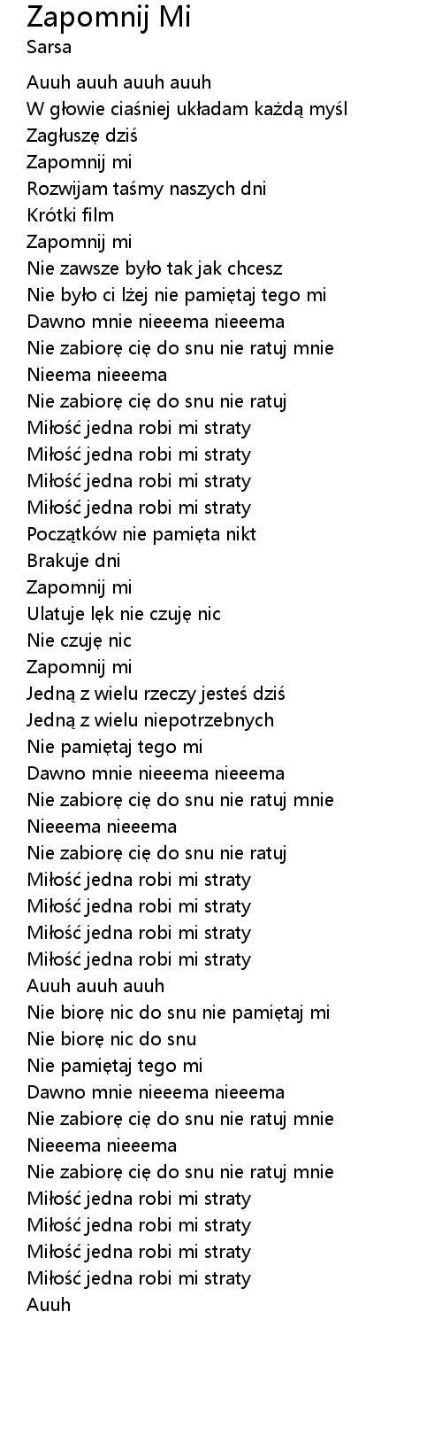 | [02:38.09] | Nie bior nic do snu nie pami taj mi |