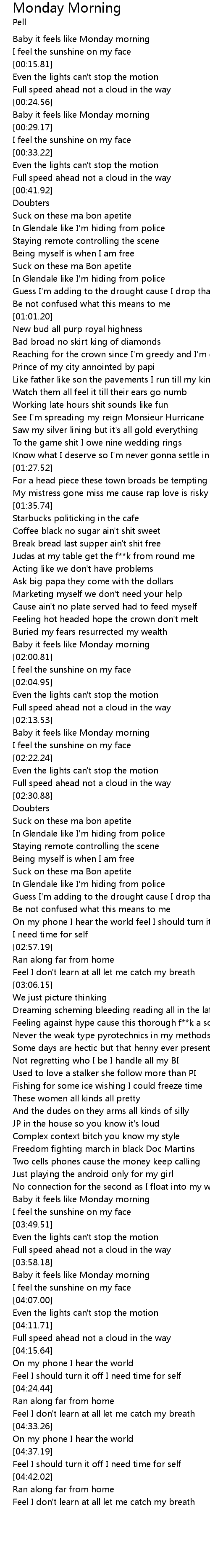| [00:45.93] | In Glendale like I'm hiding from police |