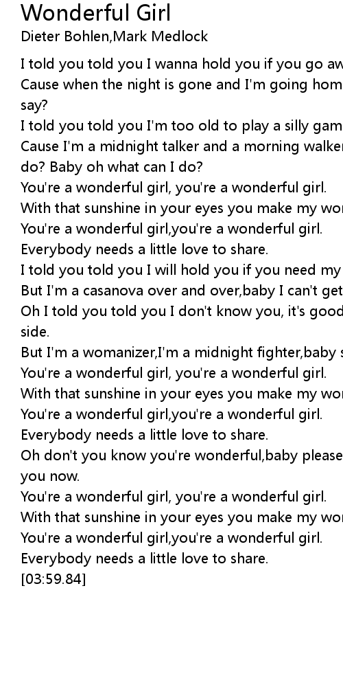 Oh don't you know you're wonderful,baby please,oooh I don't wanna lose you now. |