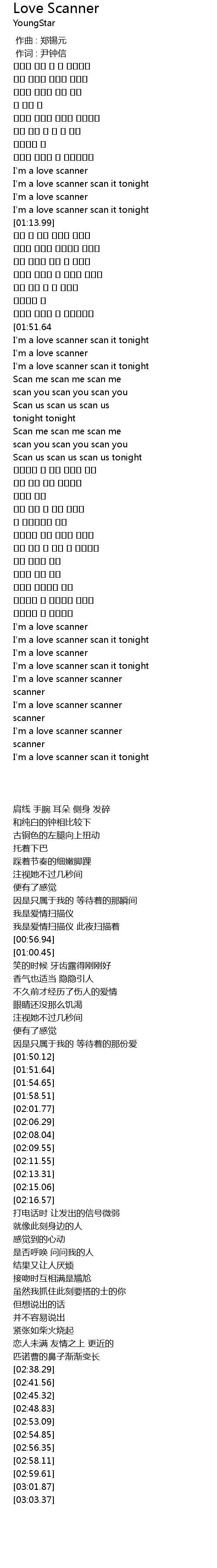 | [03:03.37] | I'm a love scanner scan it tonight |