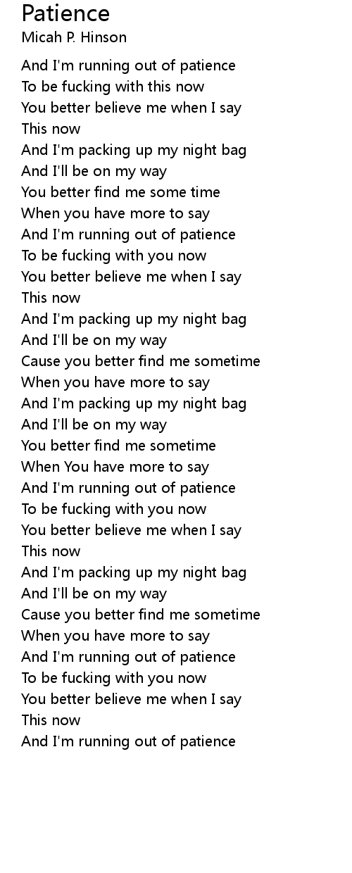 And I'm running out of patience |