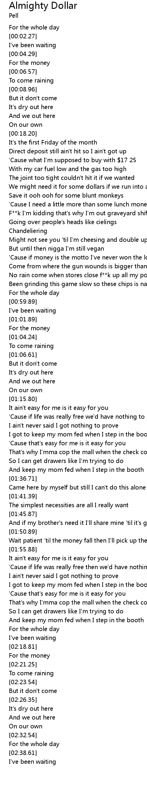 | [00:37.02] | 'Cause I need a little more than some lunch money |