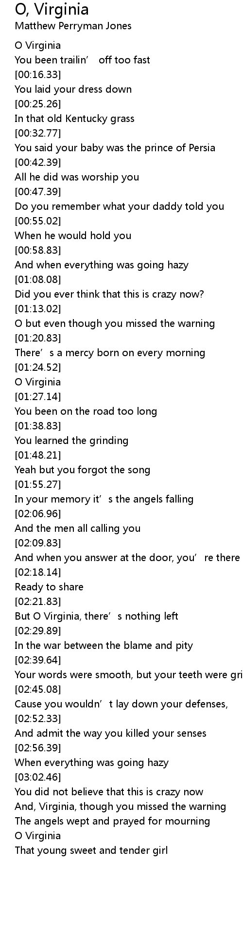 | [02:24.52] | But O Virginia, there’s nothing left |