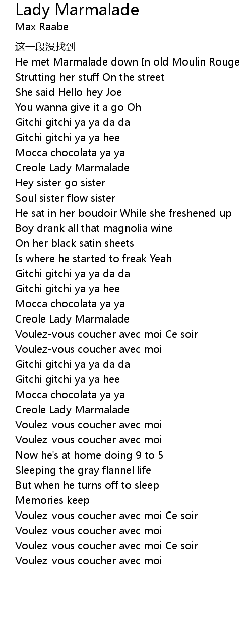 | [00:17.000] | He met Marmalade down In old Moulin Rouge |