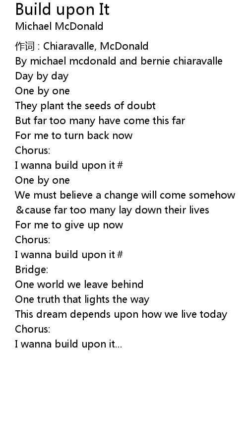 | 作词 : Chiaravalle, McDonald | |