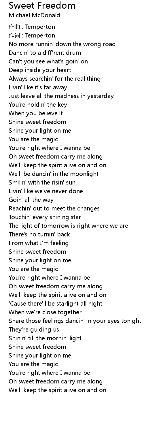 | Oh sweet freedom carry me along | |