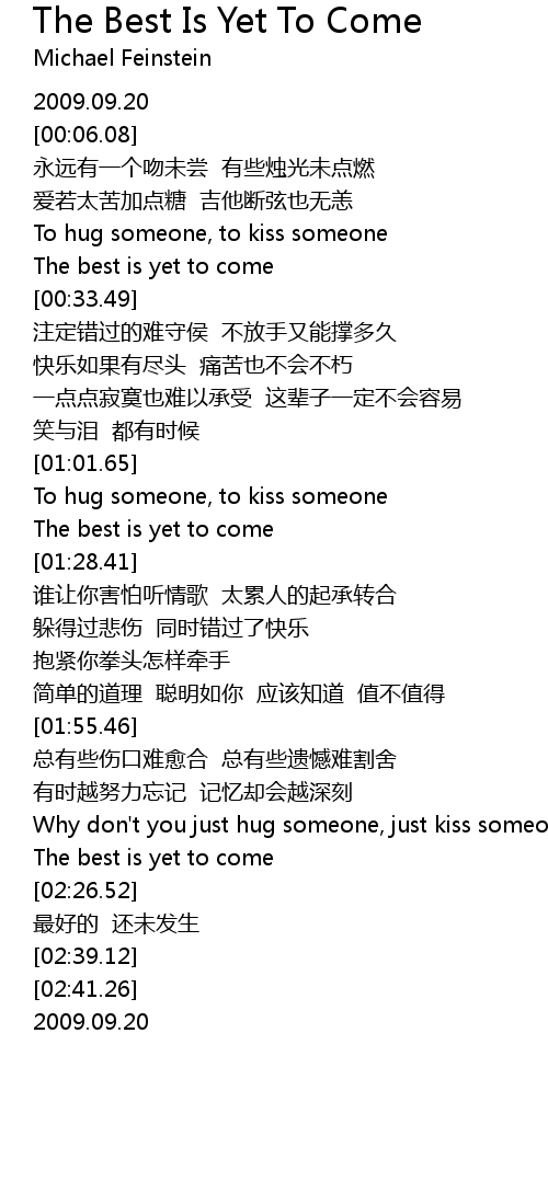| [02:30.27] | zuì hǎo de hái wèi fā shēng |