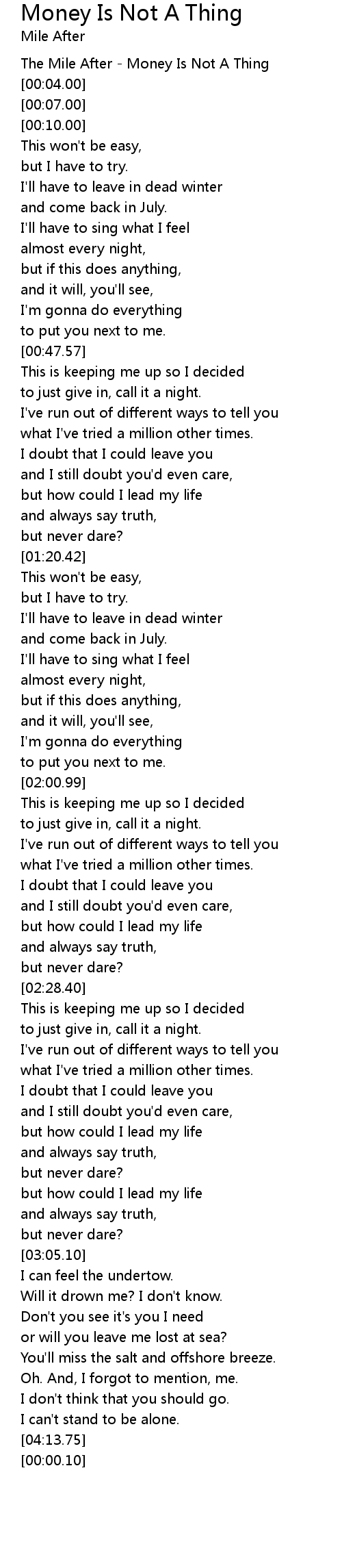 The Mile After - Money Is Not A Thing |