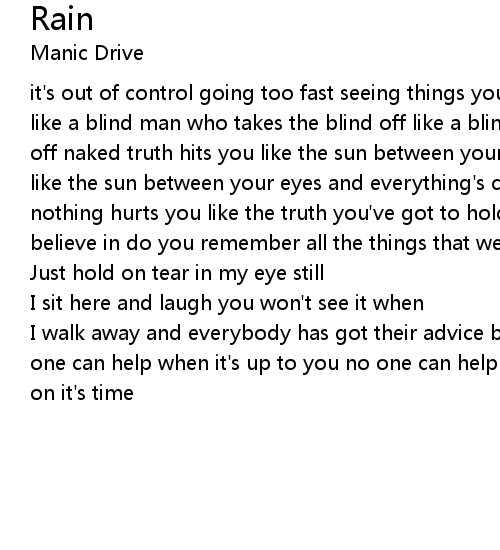 it's out of control going too fast seeing things you never thought would last like a blind man who takes the blind off like a blind man who takes the blind off naked truth hits you like the sun between your eyes naked truth hits you like the sun between your eyes and everything's coming straight at you but nothing hurts you like the truth you've got to hold on to the things that you believe in do you remember all the things that we believe in? |