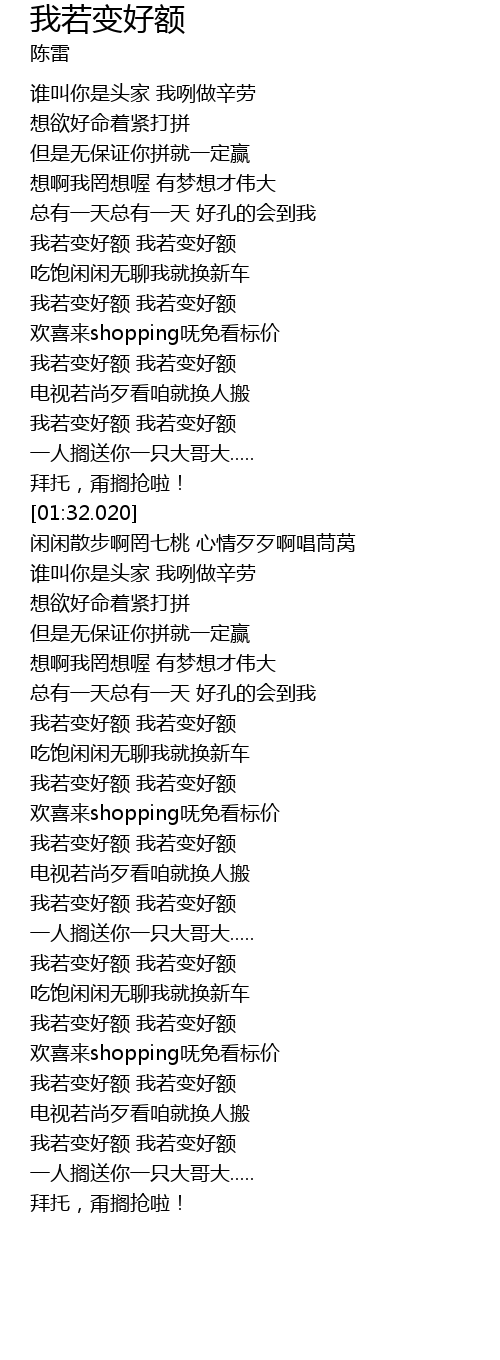 | [03:00.320] | wo ruo bian hao e wo ruo bian hao e |