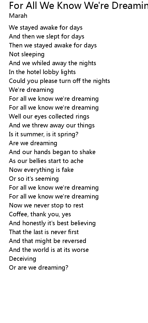 For all we know we're dreaming |