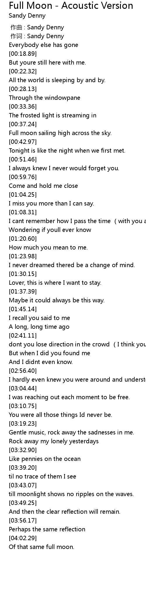| [00:00.00] | zuò qǔ : Sandy Denny |