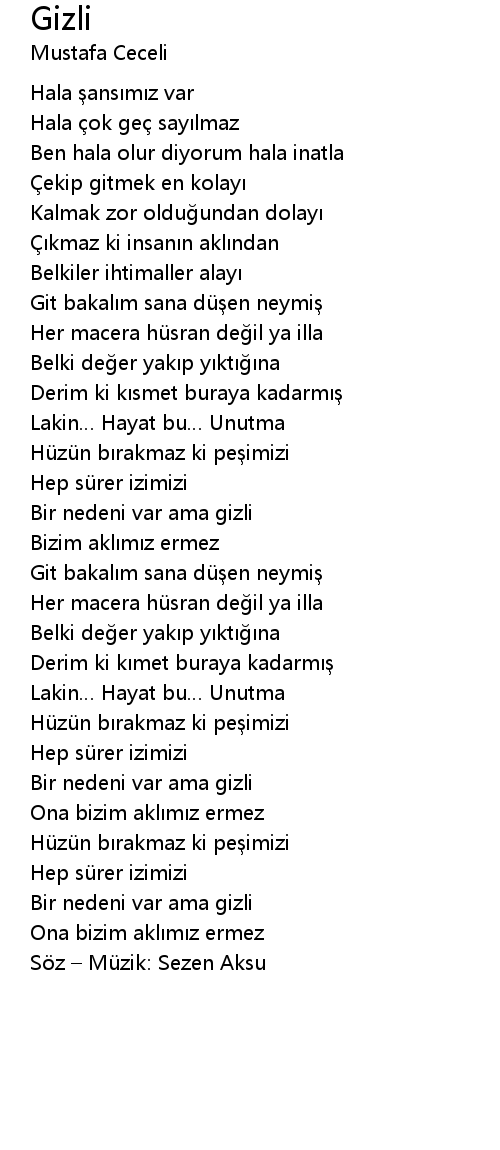 | Söz – Müzik: Sezen Aksu |