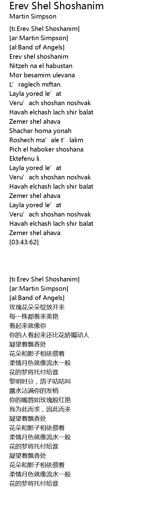 | [03:19.99] | Veru' ach shoshan noshvak |