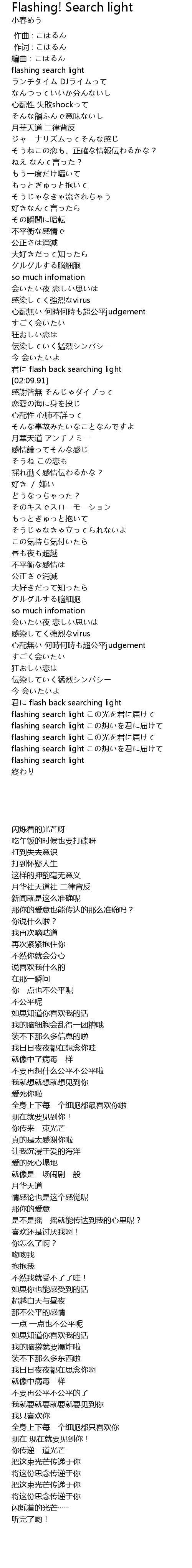 | [02:04.17] | 君に flash back searching light |