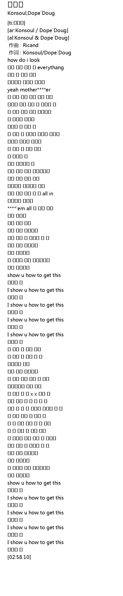 | [00:01.00] | 作词 : Konsoul/Dope`Doug |