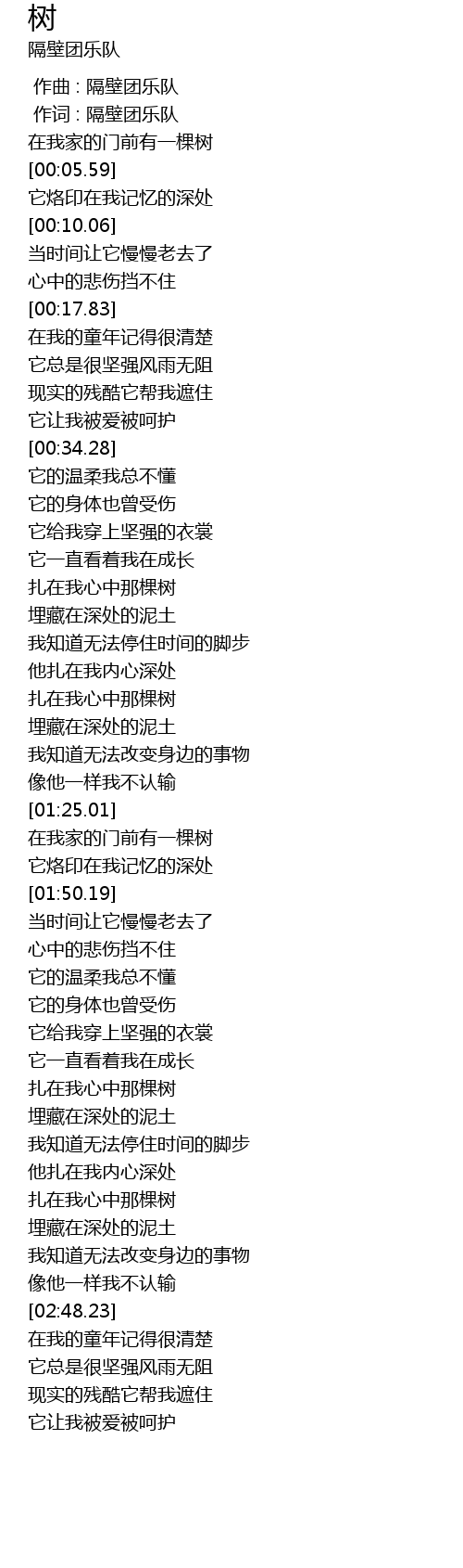 | [01:08.02] | 扎在我心中那棵树 |