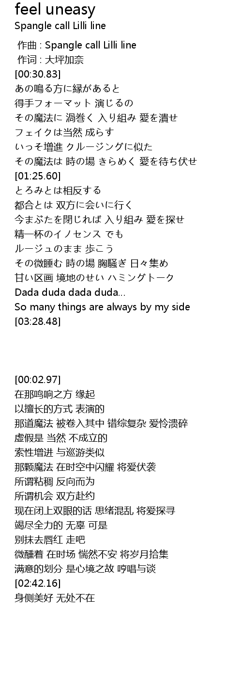 | [00:00.00] | zuò qǔ : Spangle call Lilli line |